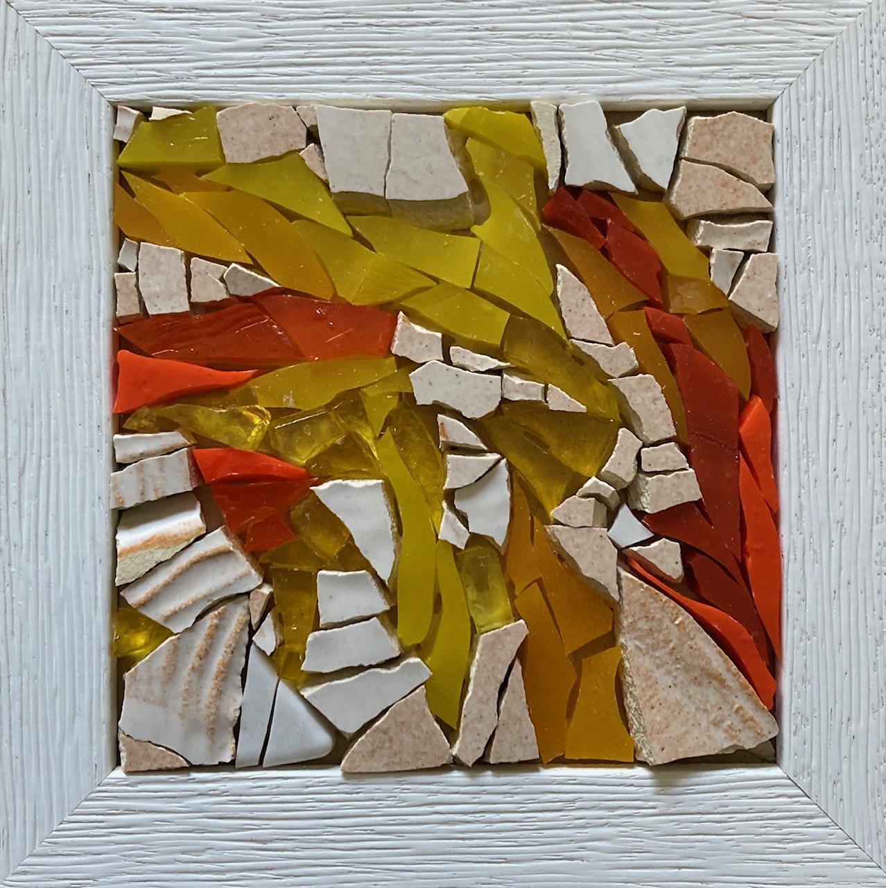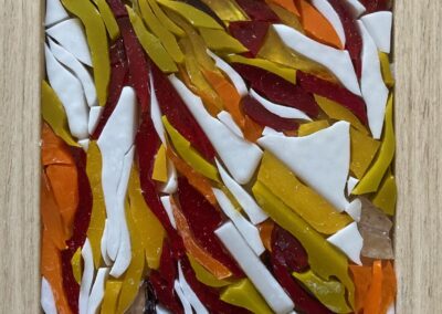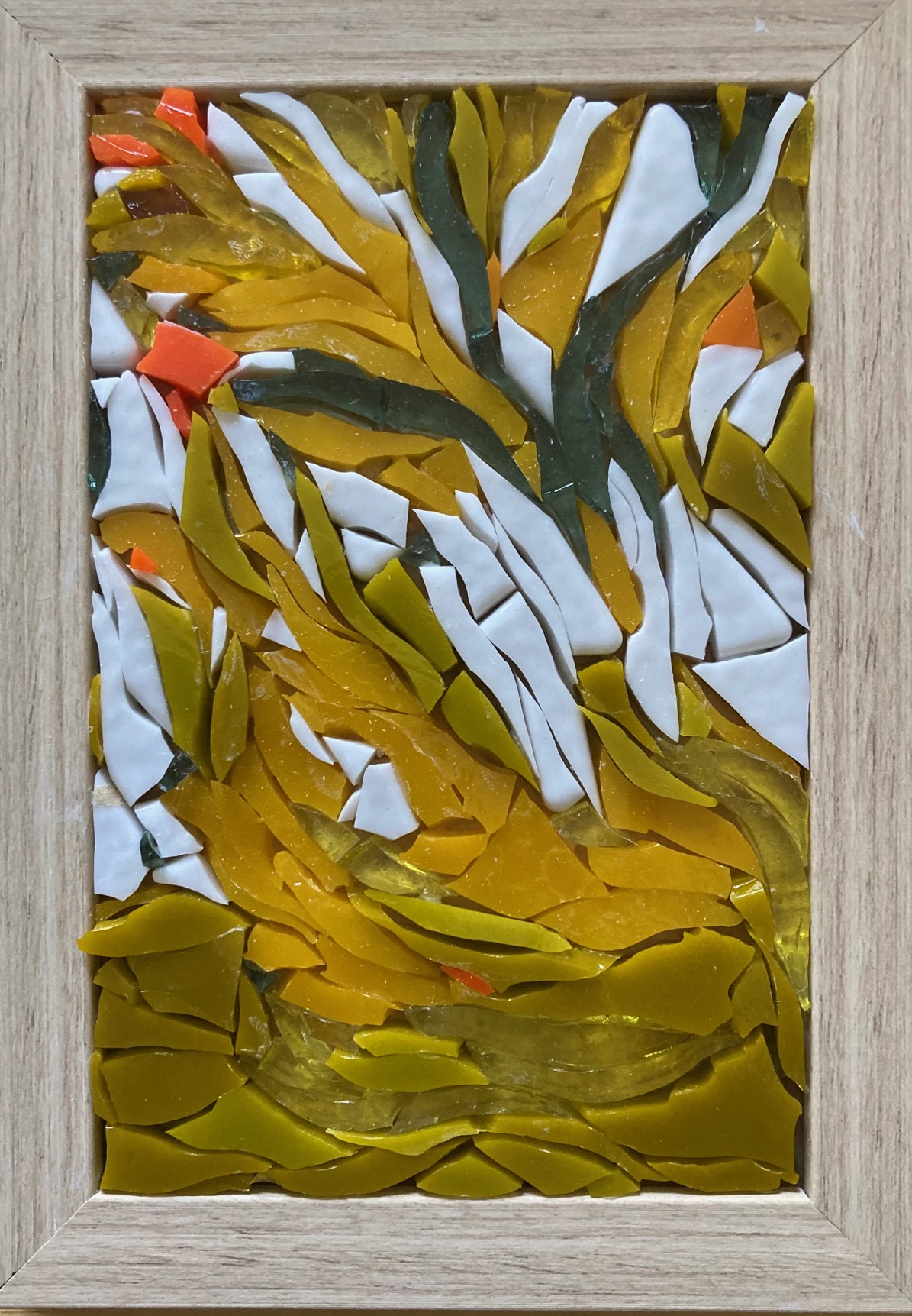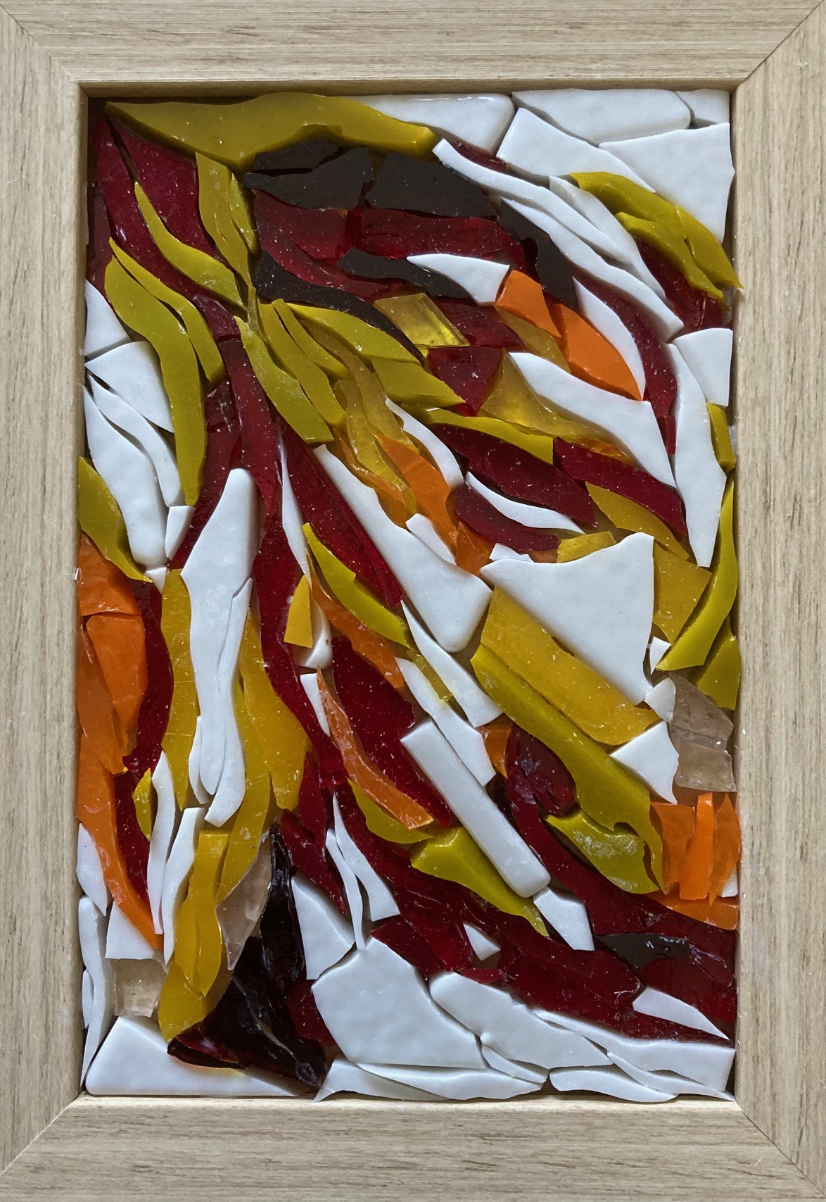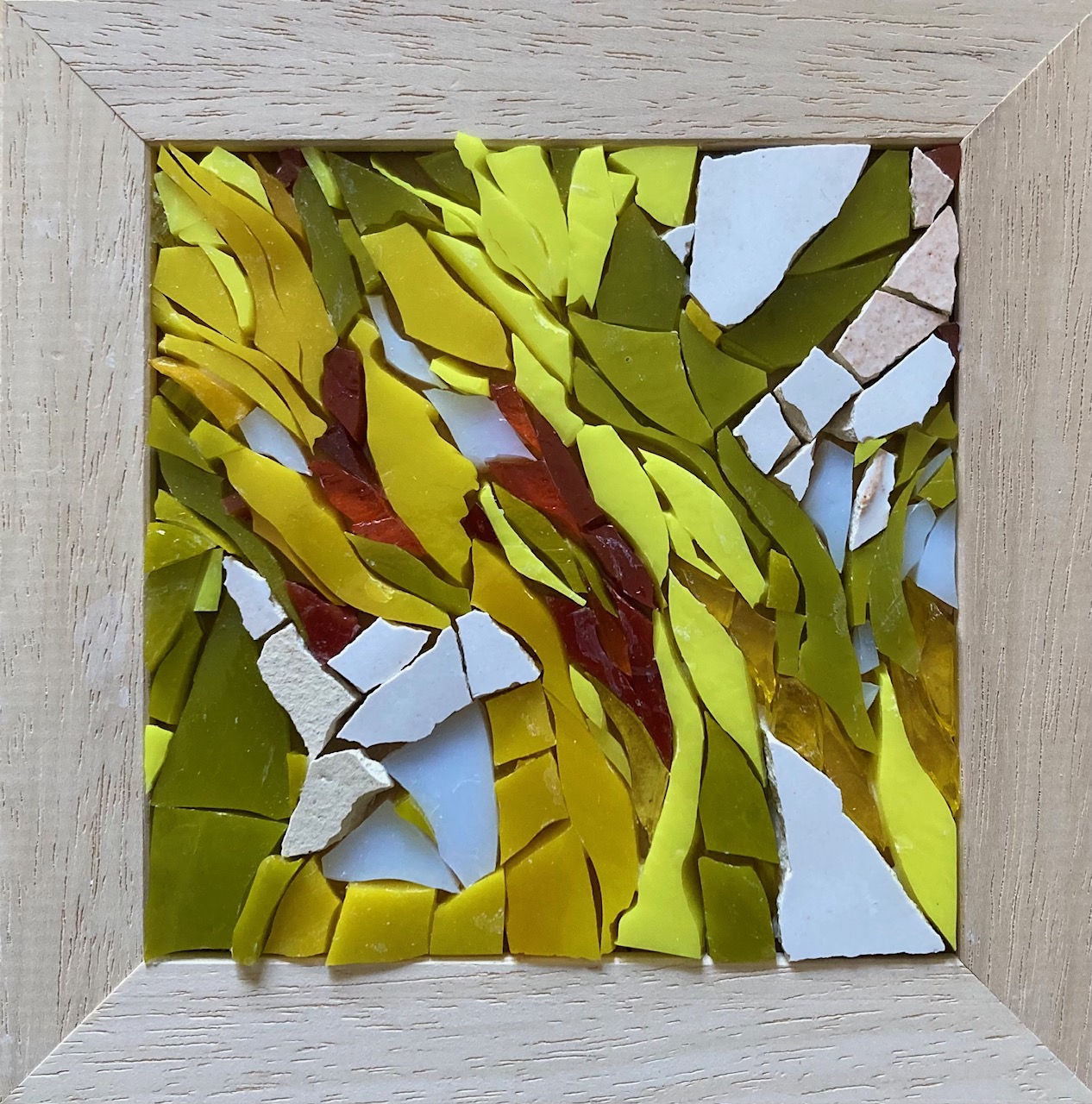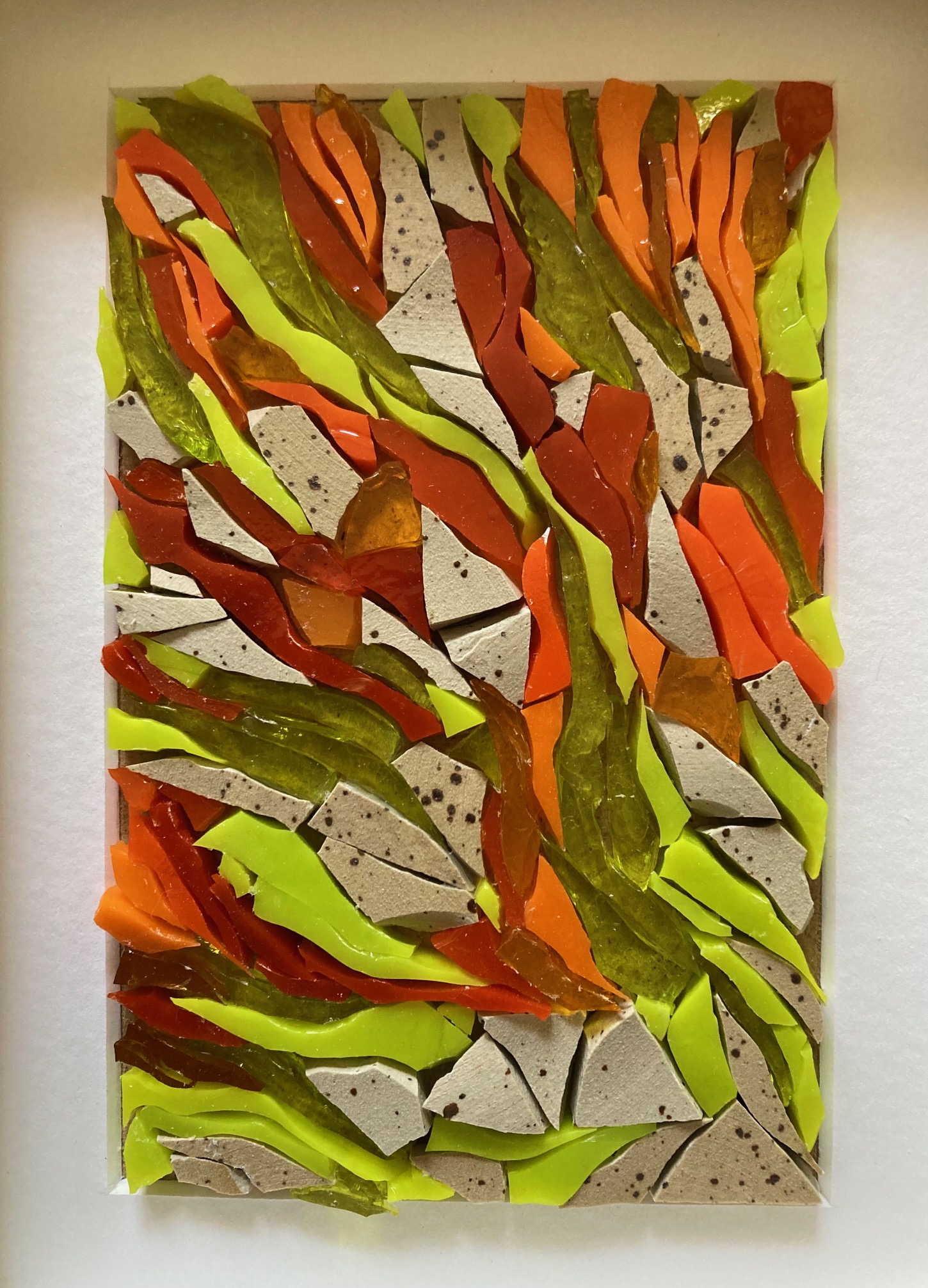 Je m'inspire du verre, de ses couleurs, de sa lumière. Dans un état de contemplation pure, j'assemble des formes, qui figurent d'autres formes, à l'infini. Je crée des petits tableaux colorés qui invitent au voyage imaginaire, à chaque fois réinventé.