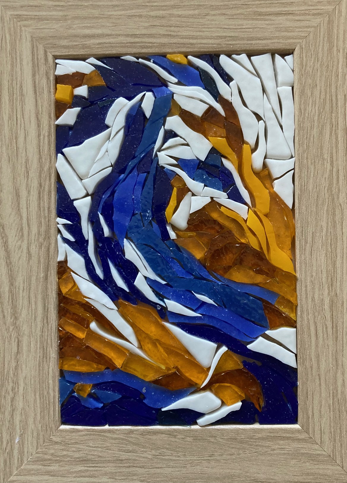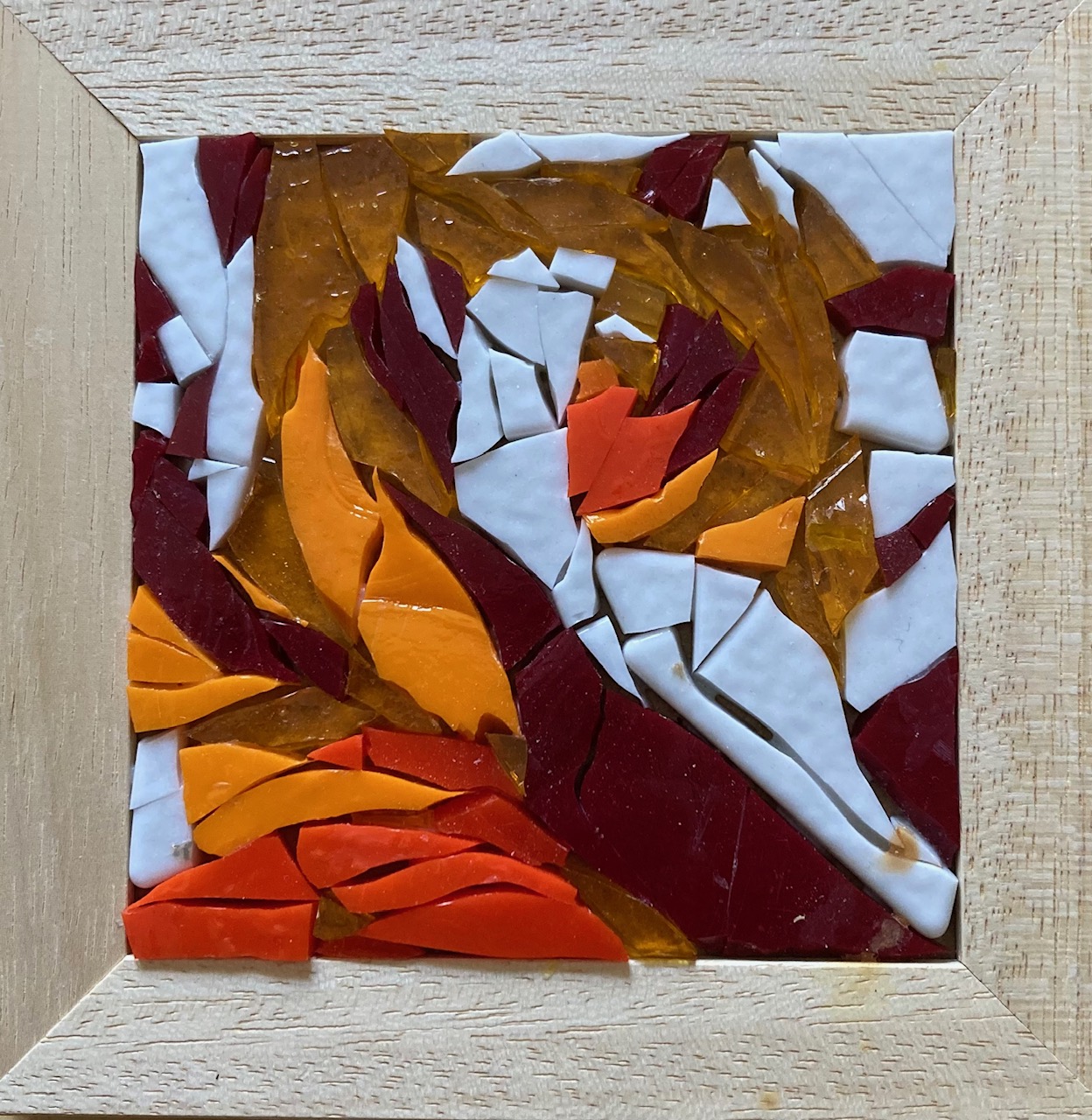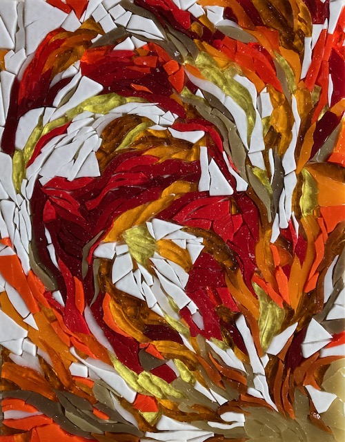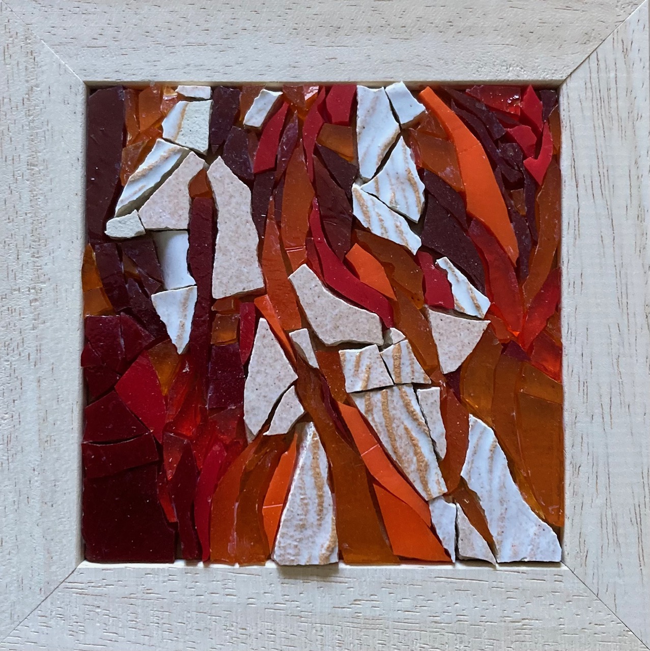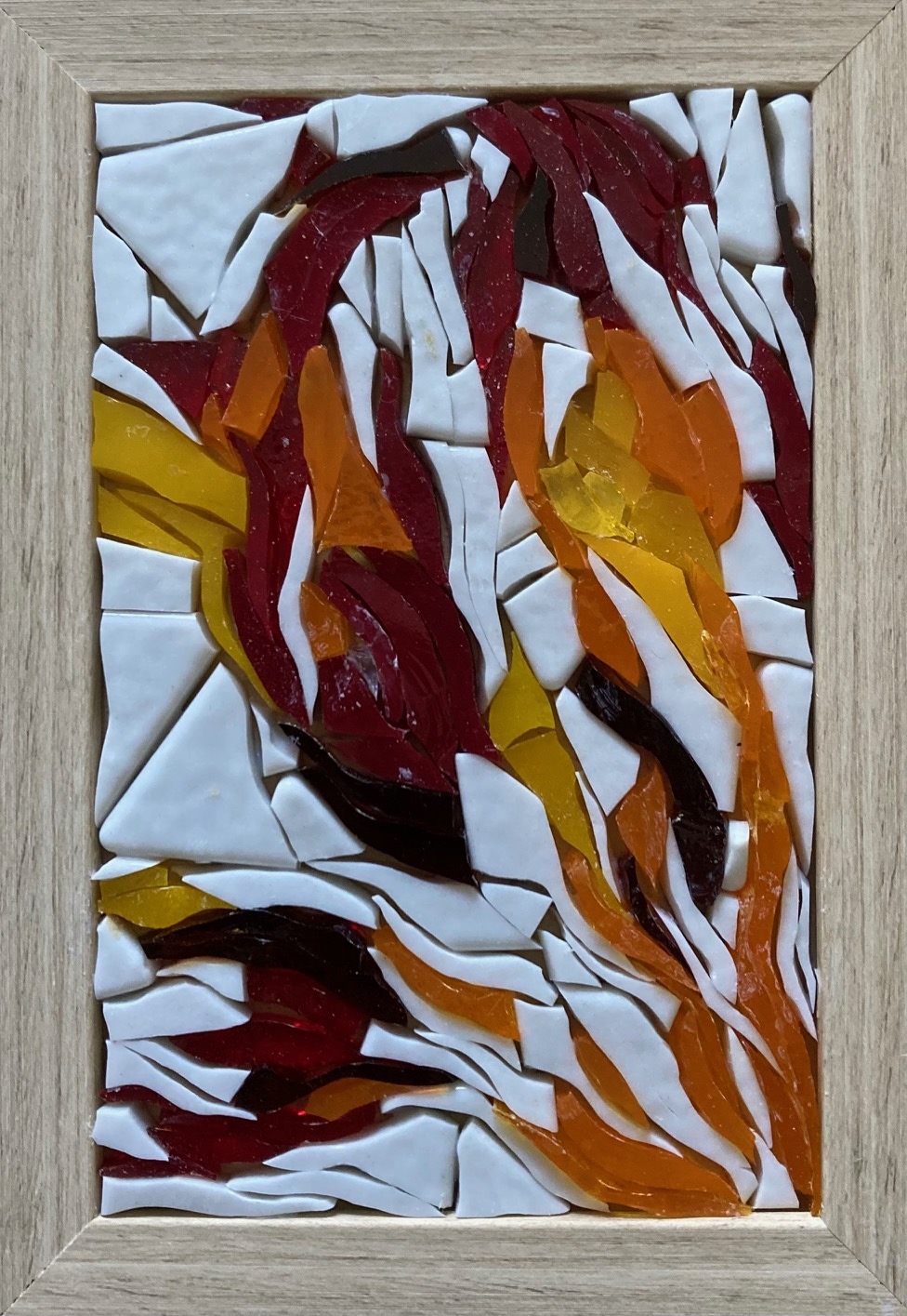 Je m'inspire du verre, de ses couleurs, de sa lumière. Dans un état de contemplation pure, j'assemble des formes, qui figurent d'autres formes, à l'infini. Je crée des petits tableaux colorés qui invitent au voyage imaginaire, à chaque fois réinventé.